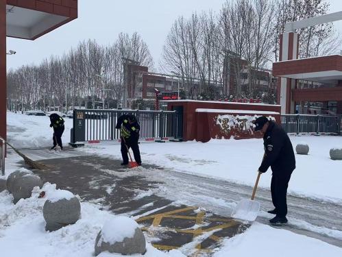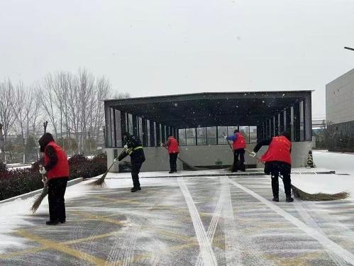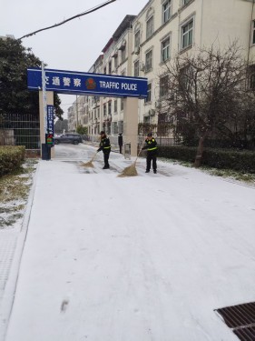 1月19日,漯河城區(qū)普降大雪,為確保客戶單位人員、車輛出行安全,公司第一時間啟動應(yīng)急預(yù)案,各駐點隊員在完成日常安保巡邏任務(wù)的同時,主動承擔(dān)起掃雪除冰工作。從機關(guān)單位、企業(yè)園區(qū)到住宅小區(qū),隊員們手持鐵鍬、掃帚等工具,頂著寒風(fēng)、踏著積雪,對出入口、主干道、停車場等重點區(qū)域進行全面清理。
